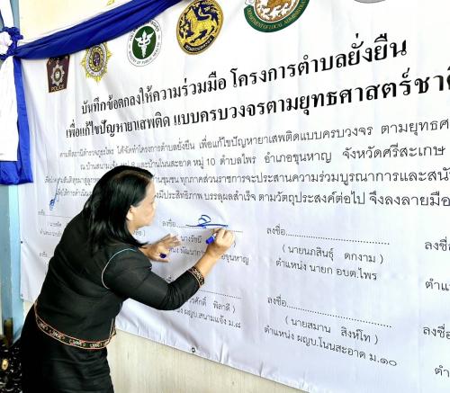 เวลา 13.00 น.นายศดิศ ณิชกุล นายอำเภอขุนหาญ พร้อมด้วย นางรัชนี แสงสว่าง พัฒนาการอำเภอขุนหาญ ร่วมลงนามบันทึกข้อตกลงร่วมมือ(MOU)ในการป้องกันและแก้ไขปัญหายาเสพติดในบ้านสนามแจ้ง หมู่ที่ 8 และบ้านโนนสะอาด หมู่ที่ 10 ตำบลไพร ณ ศาลาประชาคมบ้านโนนสะอาด หมู่ที่ 10 ตำบลไพร