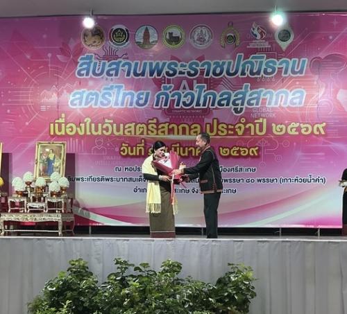 นายอนุรัตน์ ธรรมประจำจิต ผู้ว่าราชการจังหวัดศรีสะเกษ มอบหมายให้ นายสุกิจ เหลืองสกุลไทย รองผู้ว่าราชการจังหวัดศรีสะเกษ เป็นประธานในพิธีเปิดงานฯ พร้อมอ่านสารวันสตรีสากล ประจำปี 2569 โดยมีผู้เข้าร่วมงานจากหน่วยงานภาครัฐ ภาคเอกชน ภาคีเครือข่าย และองค์กรสตรีจากทั้ง 22 อำเภอของจังหวัดศรีสะเกษ รวมจำนวนกว่า 650 คน โดยมีวัตถุประสงค์เพื่อเสริมสร้างศักยภาพสตรีให้มีความรู้ความสามารถ พัฒนาตนเองจนเป็นแบบอย่างที่ดีและได้รับการยอมรับในสังคม สร้างพลังและโอกาสให้สตรีได้แลกเปลี่ยนเรียนรู้ประสบการณ์ในการขับเคลื่อนงานพัฒนาพื้นที่ ยกย่องเชิดชูเกียรติสตรีผู้มีผลงานโดดเด่นและสร้างคุณประโยชน์ต่อสังคมและประเทศชาติ และเพิ่มช่องทางการตลาดให้กับกลุ่มอาชีพสตรี ผู้ผลิตและผู้ประกอบการสินค้า OTOP