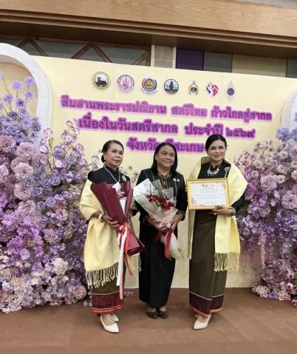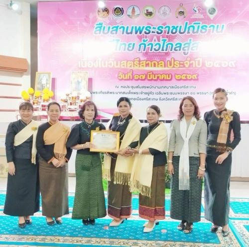 ในการนี้นางรัชนี แสงสว่าง พัฒนาการอำเภอขุนหาญ พร้อมนางสาวสุทธิกานต์ สุทธิ นักวิชาการพัฒนาชุมชนชำนาญการ คณะกรรมการพัฒนาสตรีอำเภอขุนหาญ และสมาชิกกองทุนพัฒนาบทบาทสตรีอำเภอขุนหาญ ได้ร่วมกิจกรรมในครั้งนี้ และร่วมแสดงความยินดีกับนางสนม จันทมาล คณะกรรมการพัฒนาสตรีตำบลโพธิ์กระสังข์ ได้รับรางวัลชมเชยการแต่งกายสวยงาม ในงานวันสตรีสากล ประจำปี 2569