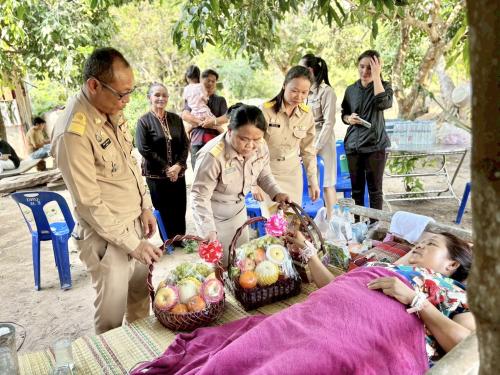ในการนี้ได้มอบกระเช้าผลไม้ กระเช้าเครื่องดื่มสุขภาพ และเงินช่วยเหลือ เพื่อฟื้นฟูบำรุงร่างกาย และเป็นกำลังใจให้คณะทำงานขับเคลื่อนกองทุนพัฒนาบทบาทสตรีตำบลบักดอง